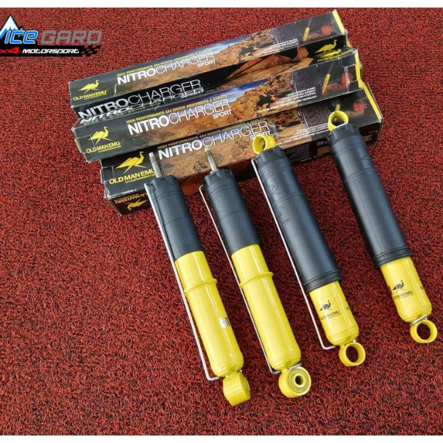 Considered the benchmark in 4WD shock absorbers Old Man Emus locally-designed and manufactured Nitrocharger low-pressure gas twin-tube units are available to suit almost every 4WD vehicle and application. Build your comprehensive suspension kit with our Old Man Emu coil springs Old Man Emu shocks and Old Man Emu leaf springs. Old Man Emu 44 suspension by ARB approaches this.